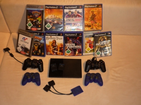 und daher haben wir eine Playstation2 Slim mit diversem Zubehör und 10 Spielen abzugeben.
