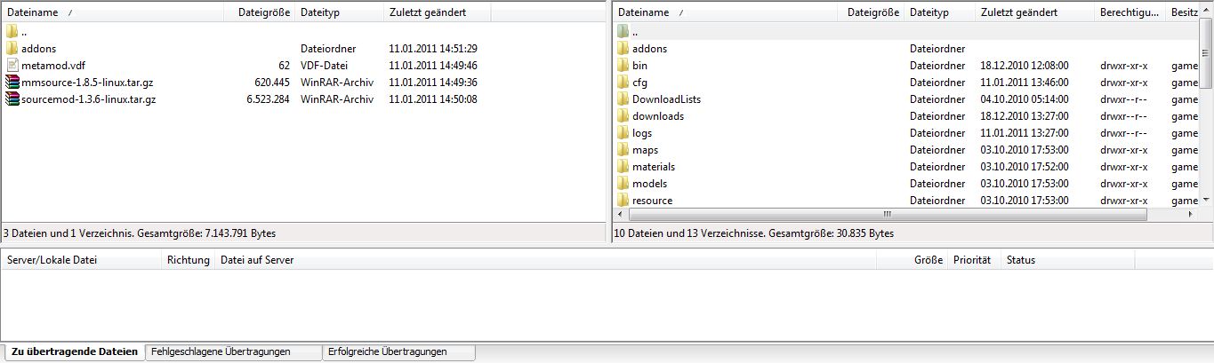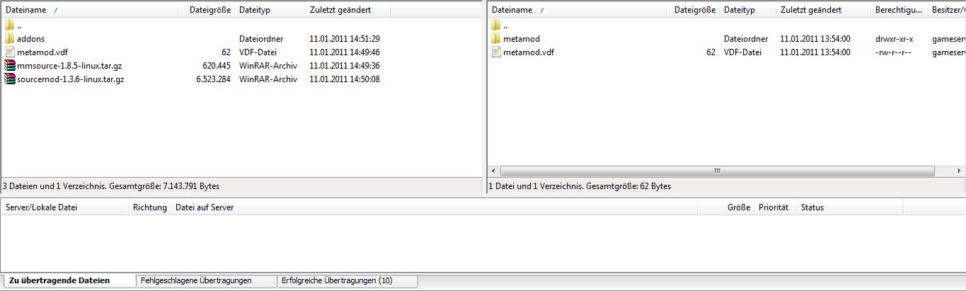 Schiebt den kompletten Ordner "metamod" in das geöffnete Verzeichnis "addons" auf dem Server.